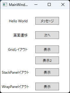 続けてメイン画面にWrapPanelサンプル表示用のボタンを追加します。